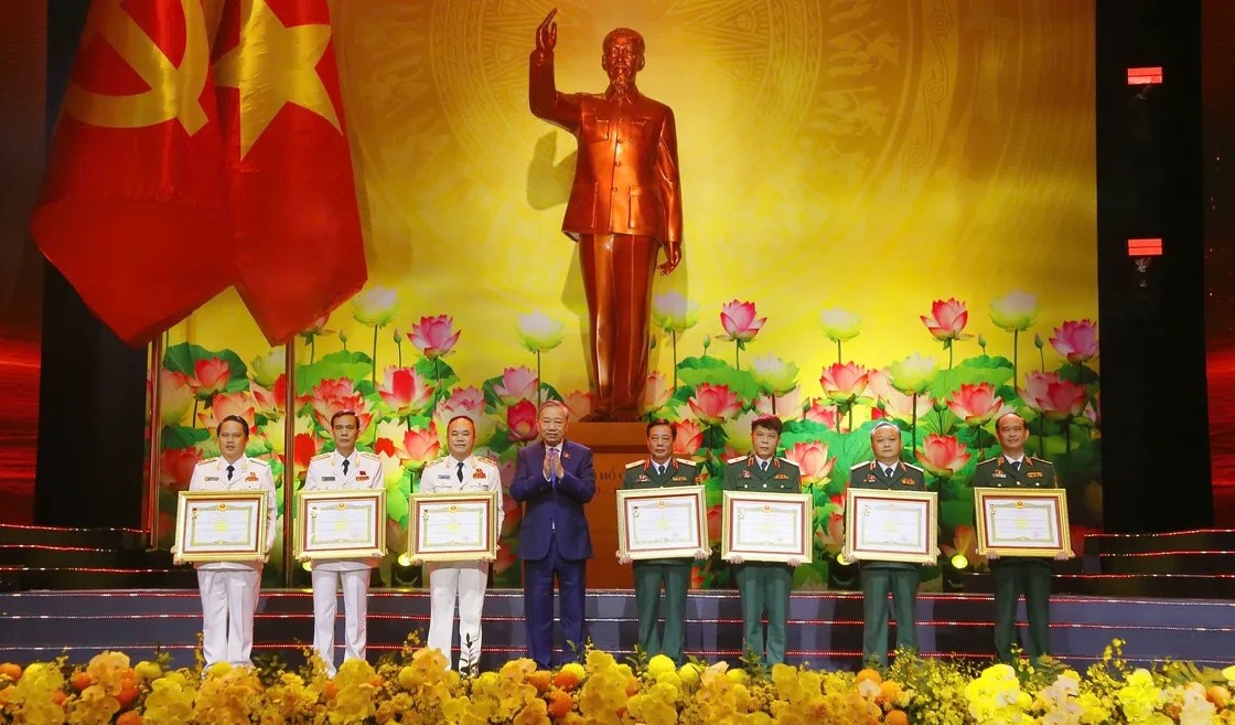 Tổng Bí thư Tô Lâm trao Danh hiệu Anh hùng Lực lượng vũ trang nhân dân cho các tập thể.
