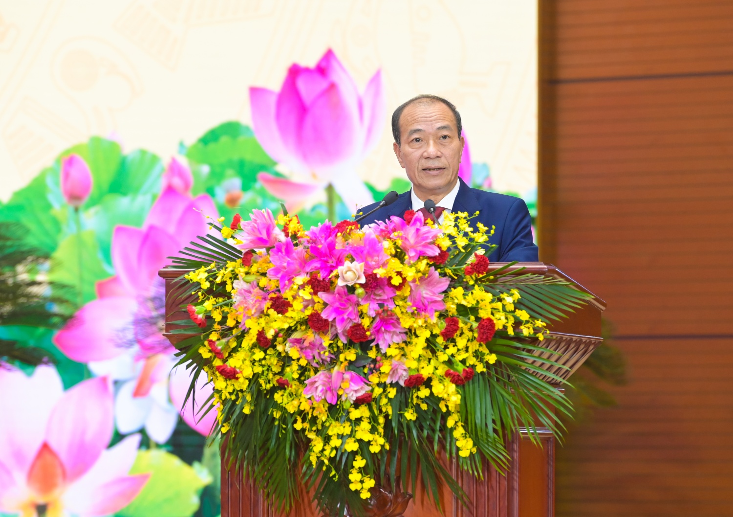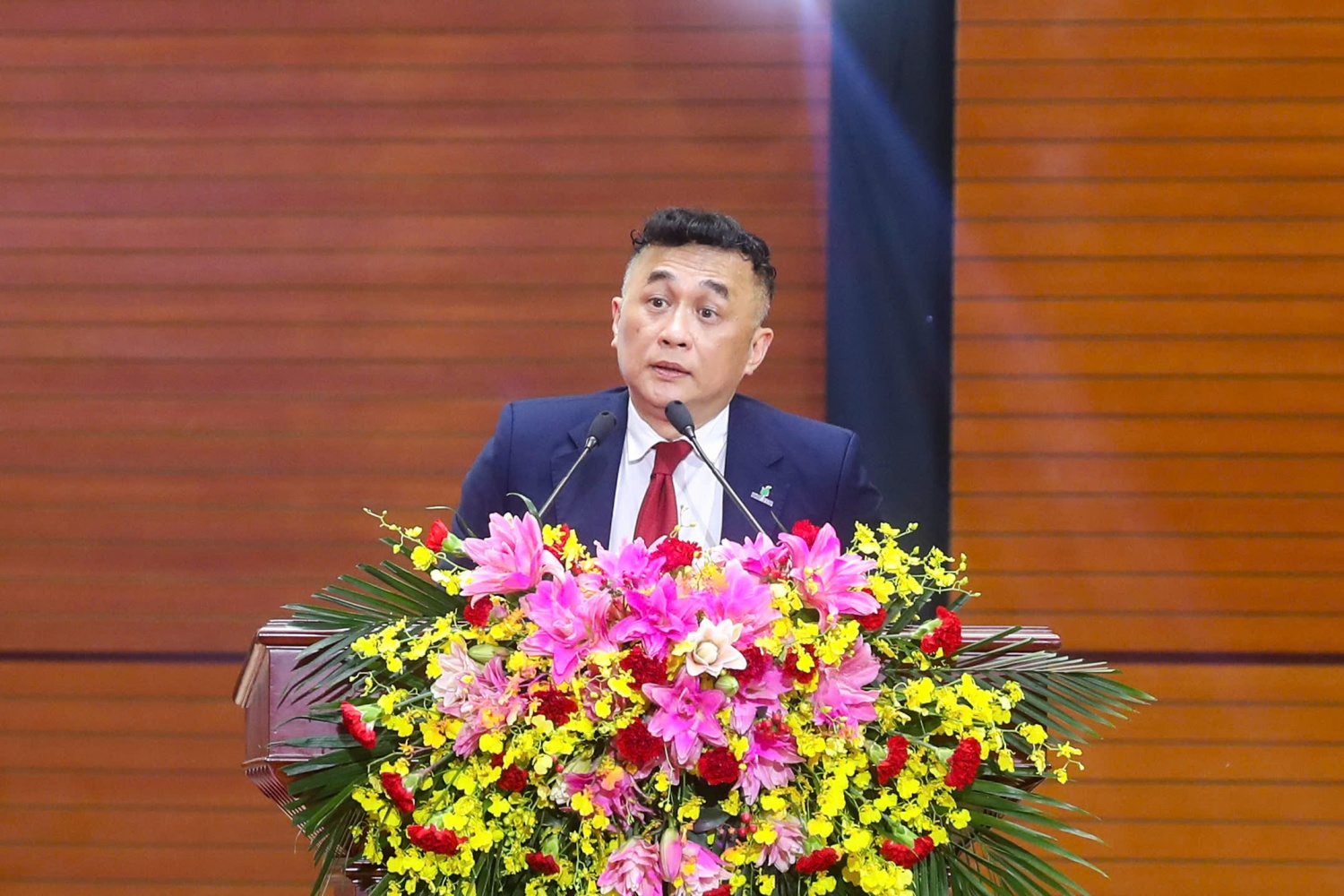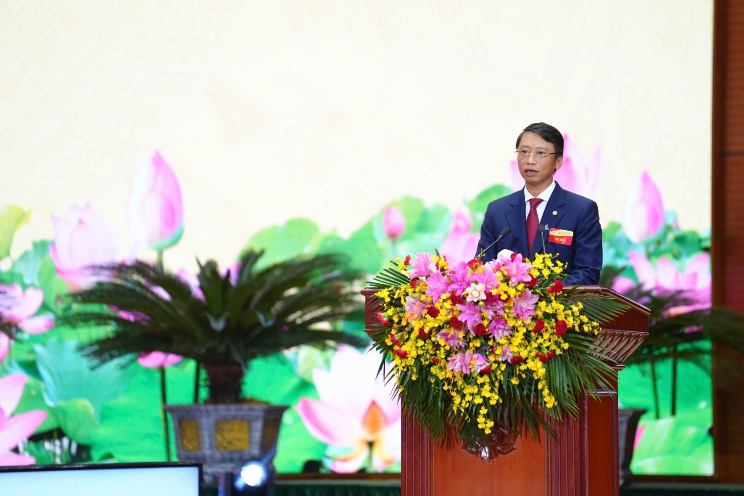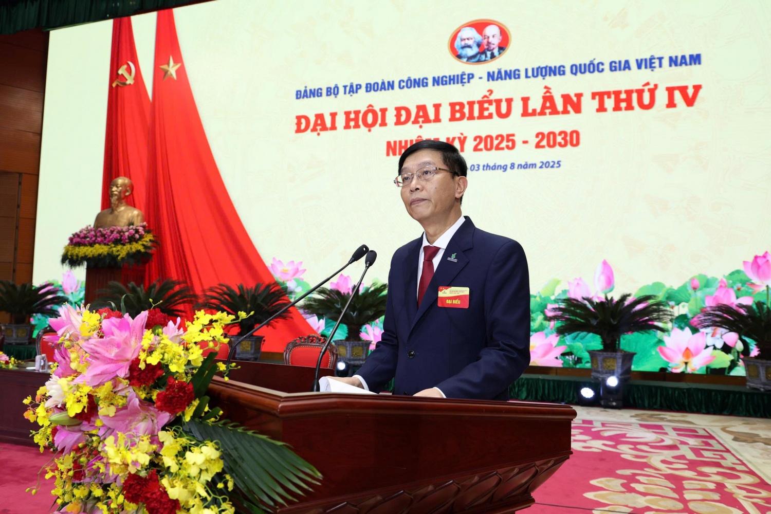 Đồng chí Lê Ngọc Sơn, Phó Bí thư Đảng ủy, Tổng Giám đốc Tập đoàn trình bày Báo cáo tổng hợp các ý kiến đóng góp vào dự thảo Văn kiện Đại hội lần thứ XIV của Đảng và Đại hội đại biểu Đảng bộ Chính phủ nhiệm kỳ 2025-2030.