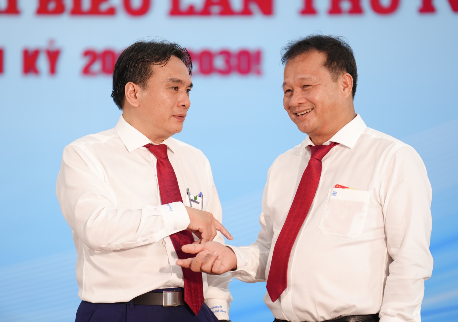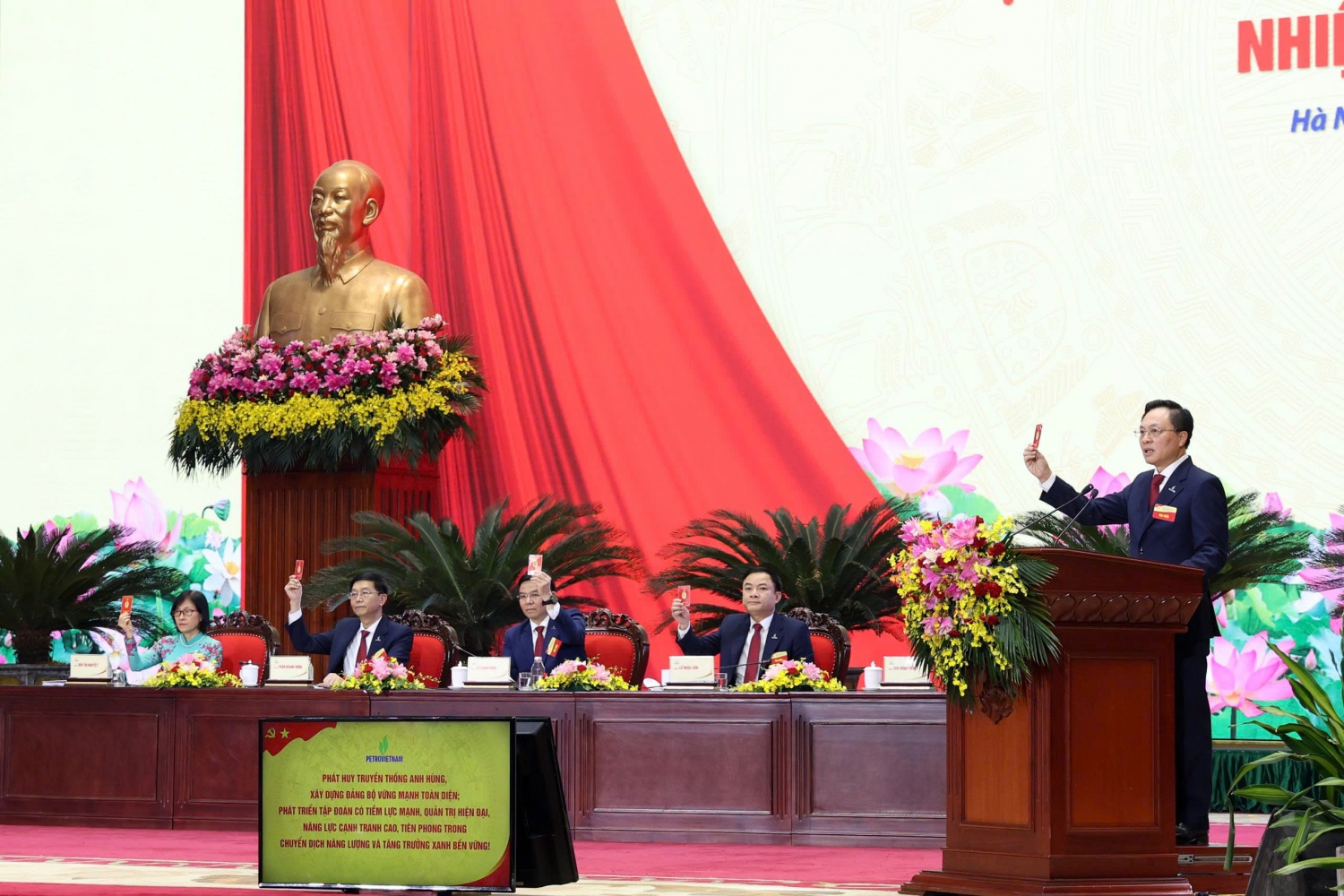 Về phía Petrovietnam có đồng chí Lê Mạnh Hùng, Bí thư Đảng ủy, Chủ tịch HĐTV; đồng chí Lê Ngọc Sơn, Phó Bí thư Đảng ủy, Tổng Giám đốc; đồng chí Trần Quang Dũng, Phó Bí thư thường trực Đảng ủy; cùng các đồng chí Ủy viên BTV Đảng ủy, Ủy viên BCH Đảng bộ, lãnh đạo các đơn vị thành viên, trực thuộc, cùng 238 đại biểu đại diện cho ý chí và nguyện vọng của gần 14 nghìn đảng viên và 55 nghìn người lao động Petrovietnam.