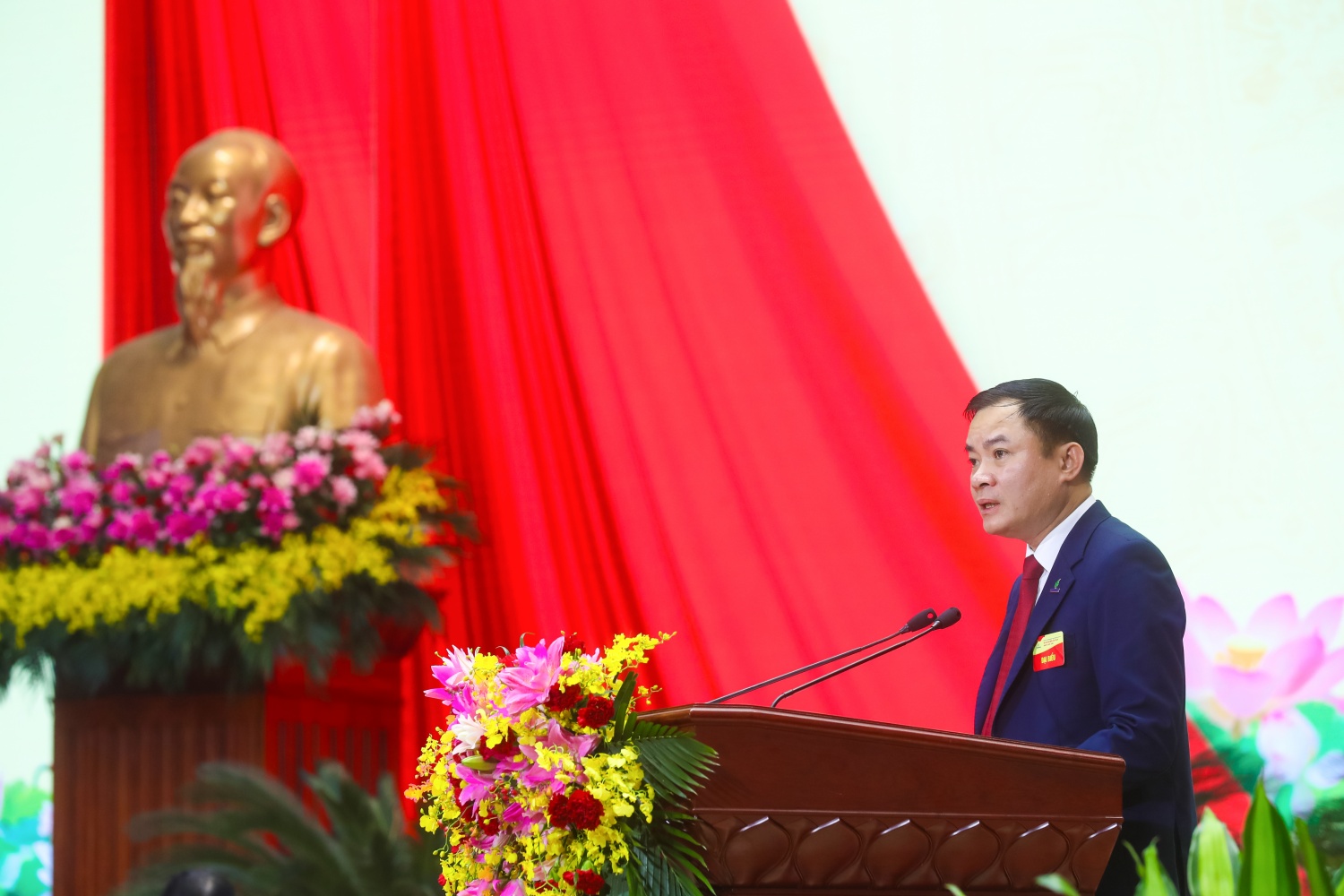 Đồng chí Vũ Mai Khanh, Bí thư Đảng ủy, Tổng Giám đốc Vietsovpetro trình bày tham luận với chủ đề “Học tập và làm theo tư tưởng, đạo đức, phong cách Hồ Chí Minh trong phát triển khoa học công nghệ, đổi mới sáng tạo, tối ưu hiệu quả sản xuất kinh doanh”