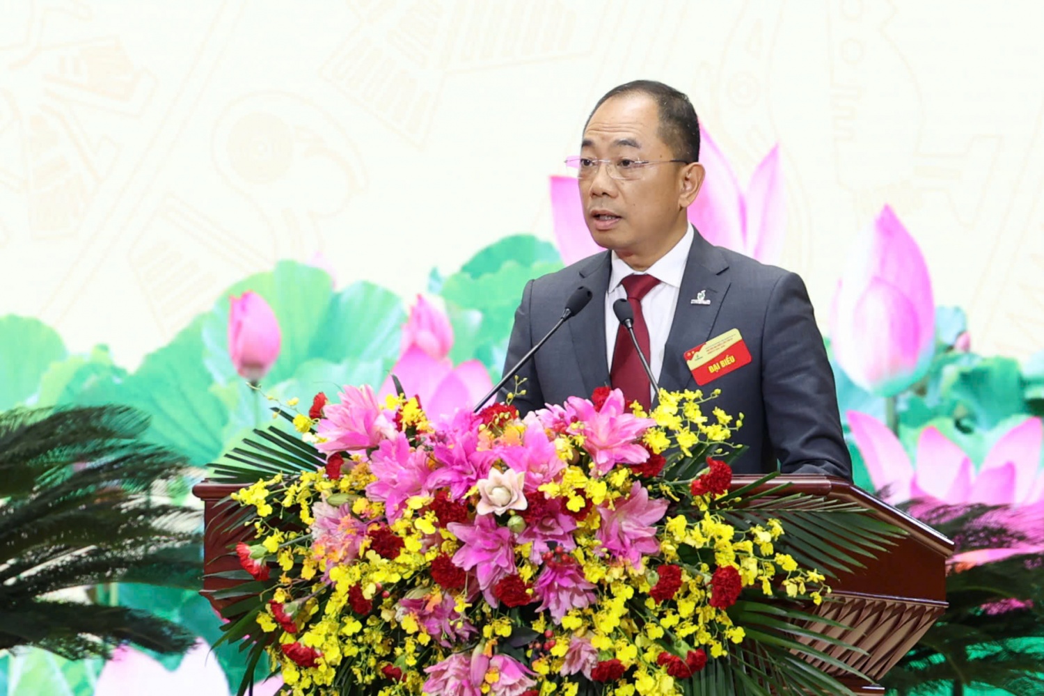 Đồng chí Phạm Quang Dũng, Ủy viên BTV, Chánh Văn phòng Đảng ủy Tập đoàn tuyên bố lý do, giới thiệu đại biểu