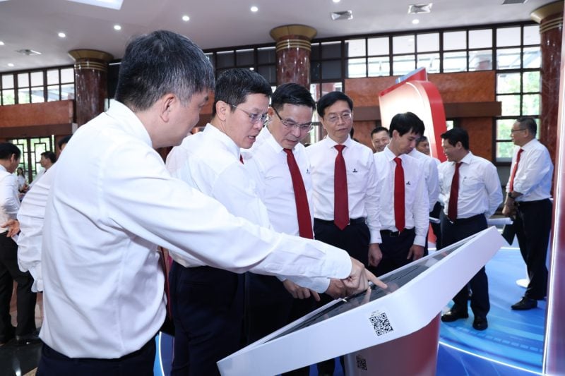 Các đại biểu tham quan khu triển lãm ảnh dấu ấn nhiệm kỳ 2020-2025 Đảng bộ Petrovietnam