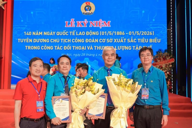 Ngày 28/4, tại Hà Nội, Tổng Liên đoàn Lao động Việt Nam đã tổ chức Lễ kỷ niệm 140 năm Ngày Quốc tế Lao động (1/5/1886 – 1/5/2026) và tuyên dương Chủ tịch Công đoàn cơ sở xuất sắc tiêu biểu trong công tác đối thoại, thương lượng tập thể năm 2026. Trong đó, Công đoàn Tập đoàn Công nghiệp – Năng lượng Quốc gia Việt Nam (Petrovietnam) có 2 Chủ tịch Công đoàn cơ sở được vinh danh.