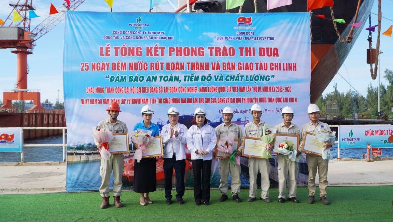 Chiều ngày 02/10/2025 tại Công trường Ụ khô số 1, Công đoàn Công ty TNHH một thành viên Đóng tàu và Công nghiệp Cơ khí Dầu khí (PVSM) phối hợp với Công đoàn Liên doanh Vietsovpetro (VSP) đã tổ chức Lễ tổng kết phong trào thi đua “25 ngày đêm nước rút hoàn thành và bàn giao tàu Chí Linh đảm bảo an toàn, tiến độ và chất lượng”.