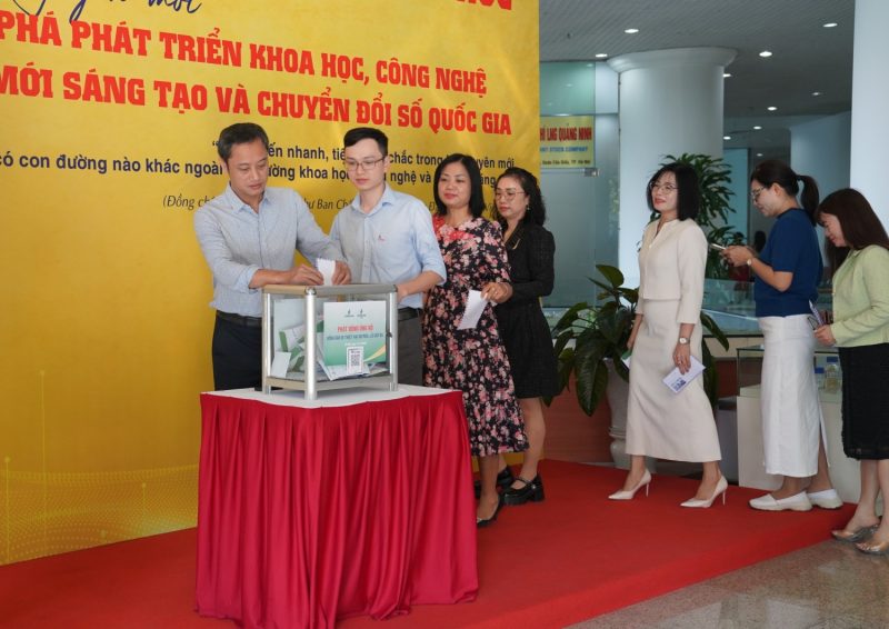 Cán bộ, nhân viên, người lao động VPI quét mã QR ủng hộ đồng bào vùng lũ lụt. |