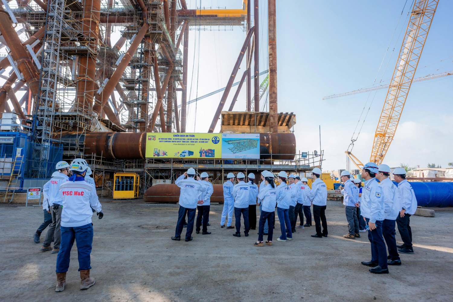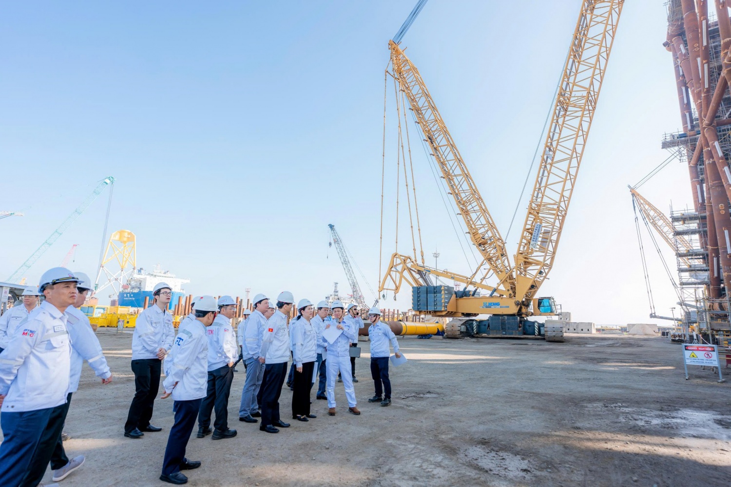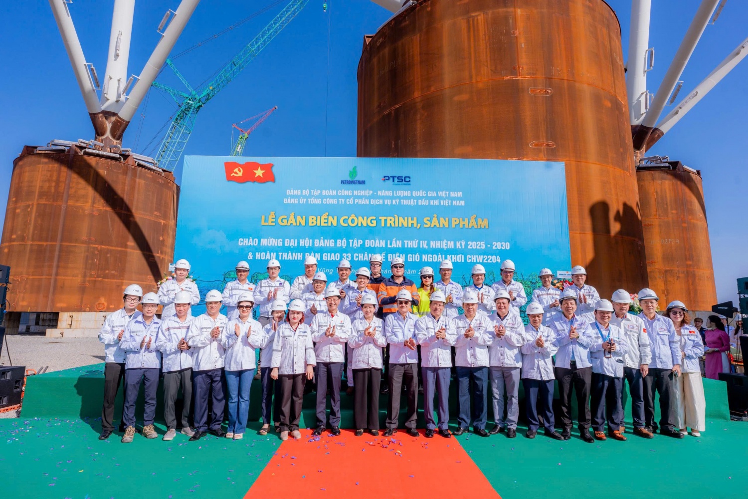 Đoàn khảo sát tại Trung tâm Công nghiệp năng lượng và Hậu cần kỹ thuật PTSC và tham dự sự kiện gắn biển công trình “hoàn thành bàn giao 33 chân đế điện gió ngoài khơi CHW2204” chào mừng Đại hội Đảng bộ Petrovietnam lần thứ IV