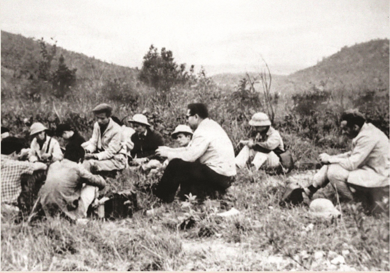 Cán bộ địa chất dầu khí cùng chuyên gia Liên Xô khảo sát thực địa vùng trũng An Châu (Thái Bình) |