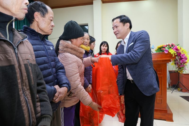 Đồng chí Lê Mạnh Hùng, Ủy viên Trung ương Đảng, Quyền Bộ trưởng Bộ Công Thương trao quà Tết cho bà con nhân dân.