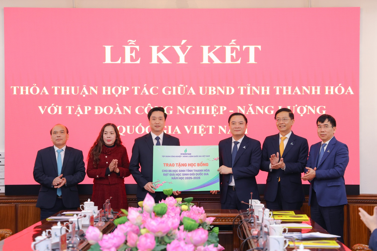 Nhân dịp này, lãnh đạo Petrovietnam trao tặng học bổng động viên các học sinh tỉnh Thanh Hóa đạt giải cao trong kỳ thi Học sinh giỏi quốc gia năm học 2025-2026 |