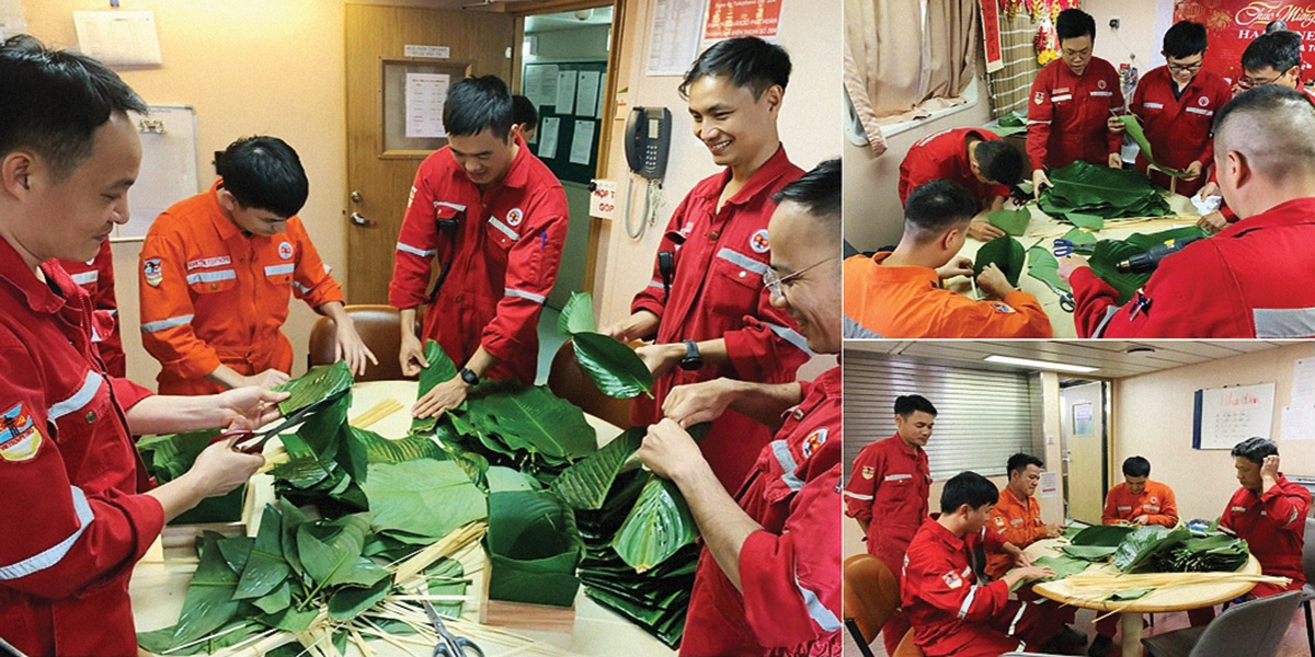 Anh Trần Đại Nghĩa – Field Superintendent (tương đương Giàn trưởng) của Công ty Liên doanh Điều hành Hoàng Long – Hoàn Vũ (HLHV JOC, thuộc Tổng công ty Thăm dò Khai thác Dầu khí (PVEP) – đơn vị thành viên của Petrovietnam), người đã cùng anh em đi qua bao mùa gió chướng ở mỏ Tê Giác Trắng bảo rằng, cái nôn nao lạ thường ấy bắt đầu từ những chuyến trực thăng cuối năm. Bởi những chuyến bay ngày thường chủ yếu chở nhân sự, vật tư, giấy tờ thì khi Tết đến gần, trực thăng còn mang theo cả “linh hồn” của ngày Tết. Đó là những thùng lá dong, lạt tre, vài cành mai, cành đào, những món quà quê được gói ghém cẩn thận từ đất liền. Giữa sắt thép, giữa gió biển, chỉ cần nhìn thấy màu xanh của lá dong hay một cành hoa nhỏ, là anh em ngoài khơi đã biết: Tết đã thật sự ra tới biển!