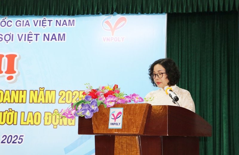 Bà Trần Thị Hoa – Chủ tich Công đoàn VNPOLY báo cáo tại Hội nghị