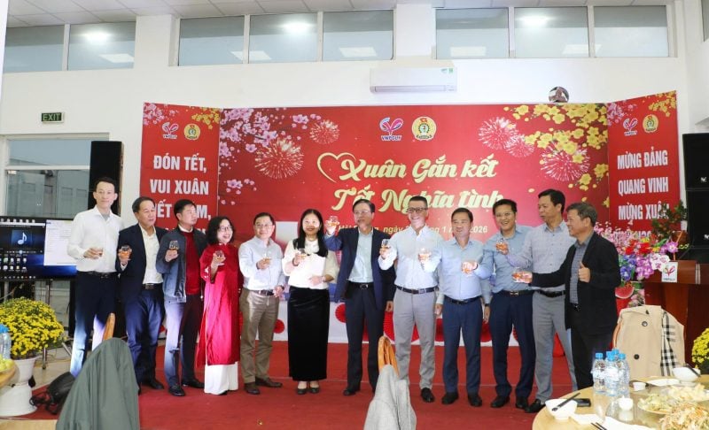 Lãnh đạo Tập đoàn – Công đoàn Petrovietnam, Lãnh đạo Công ty – Công đoàn VNPOLY cùng người lao động VNPOLY nâng ly chúc mừng năm mới 2026